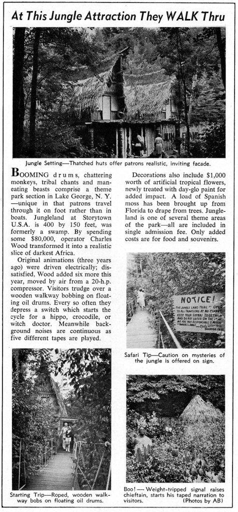 Enjoy an article including rare photos of the Jungle Land walk-thru attraction at Storytown U.S.A. in Lake George, NY that appeared in the June 16, 1962 issue of Amusement Business.