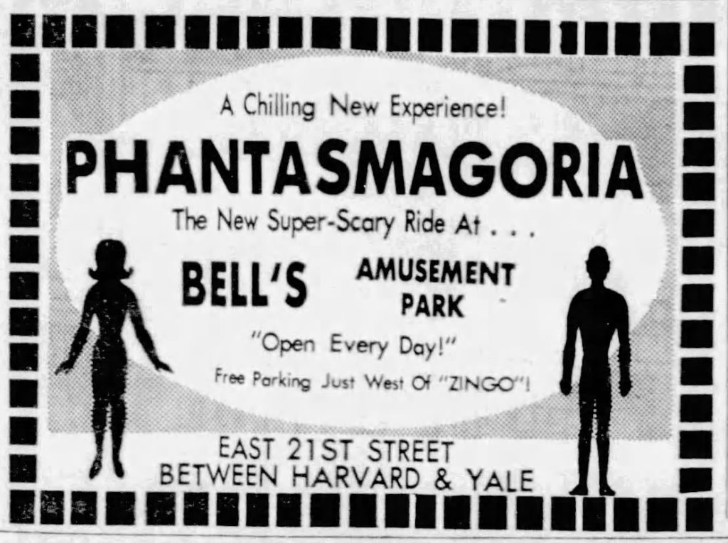 Some parks marketed Tracy’s attractions heavily while others did nothing at all. Check out some cool newspaper ads from yesteryear promoting Tracy’s Phantasmagoria dark ride at Bell’s Amusement Park in Tulsa, which closed in 2006. Many of the stunts from this defunct attraction made their way to Trimper’s Haunted House back in 2012 and still exist there today. You can read more about that stunt “migration” project here.