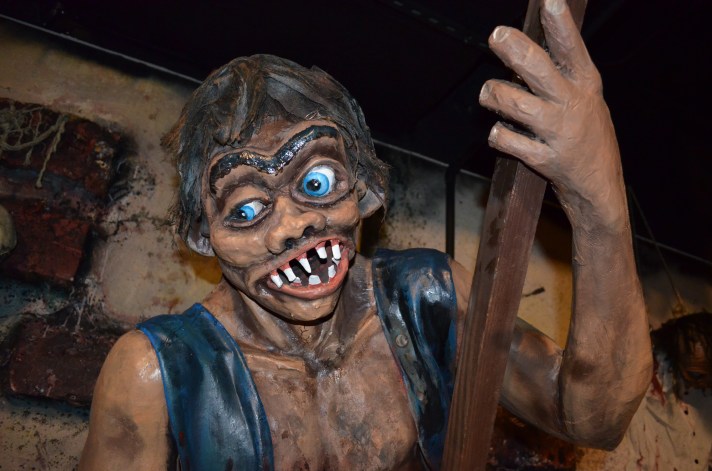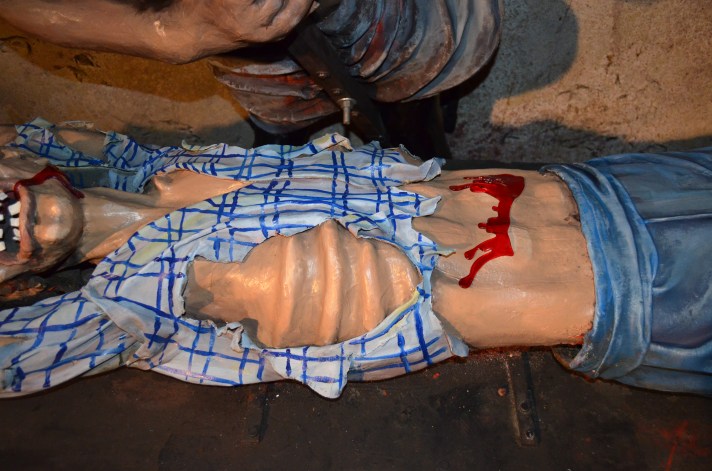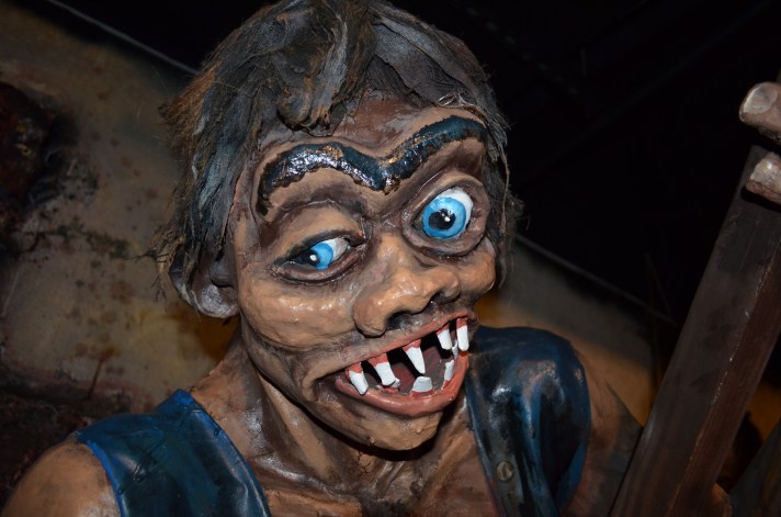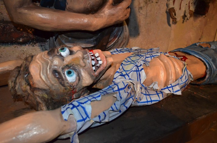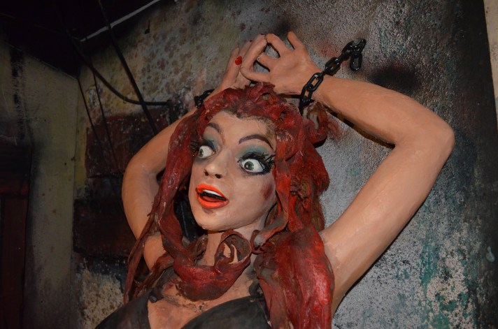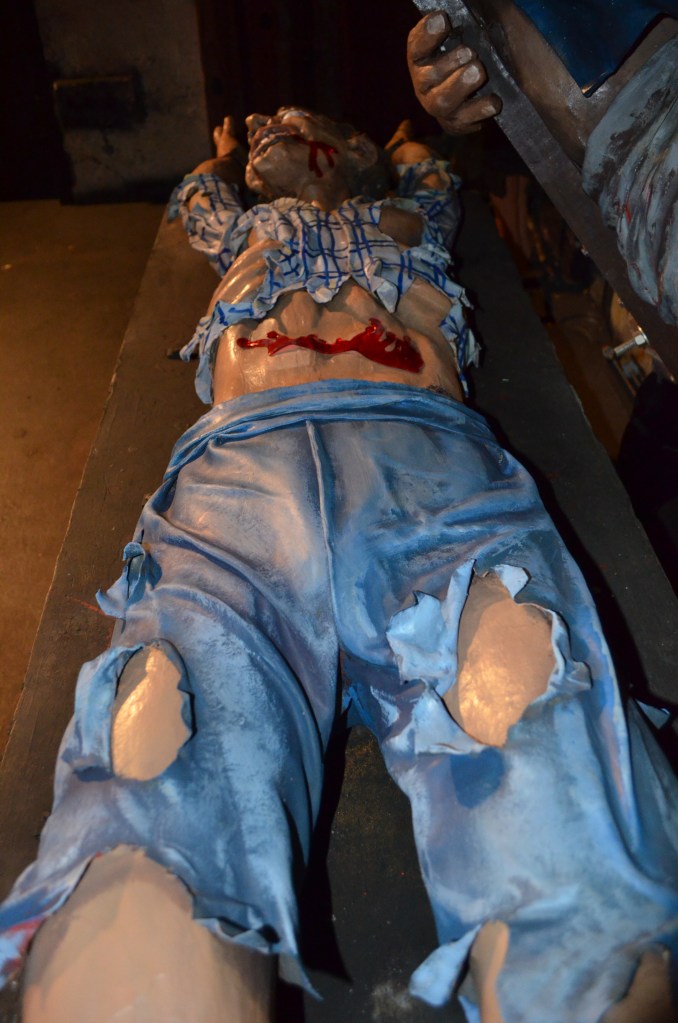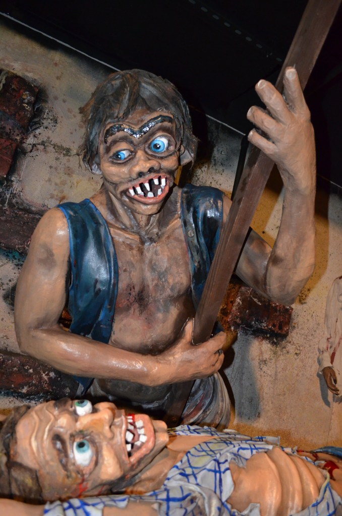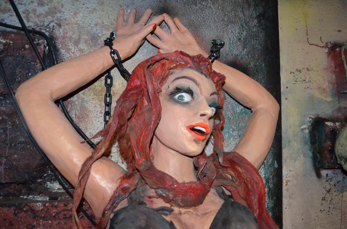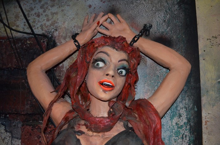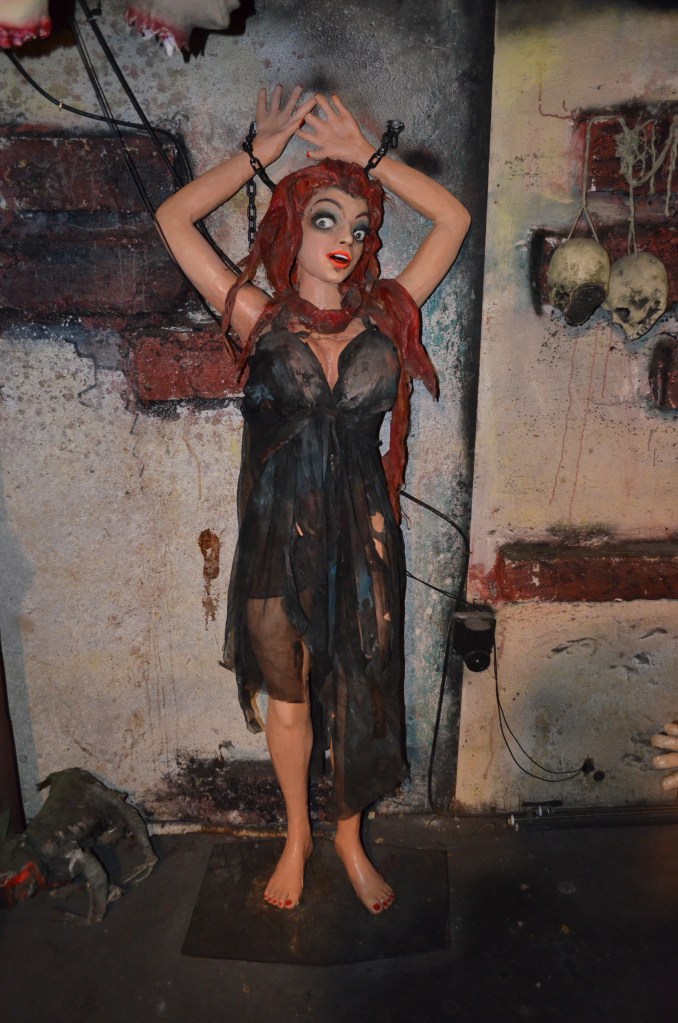 Tracy used his signature Torture Chamber stunt in attractions as early as 1963 and it was very popular thereafter, and still is today. With an average footprint of 16’ long and 8’ deep, it generally included prefabricated dimensional background panels in 4’ sections along with three to four figures animated with continuous duty motors and a few flood lights for a spooky glow. Check out some photos of Tracy’s Torture Chamber after it was freshly overhauled 10 years ago in winter 2014 at Trimper’s Amusements in Ocean City, MD. It’s so cool to see these pieces of amusement and dark ride history being so well taken care of through the years!