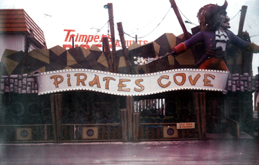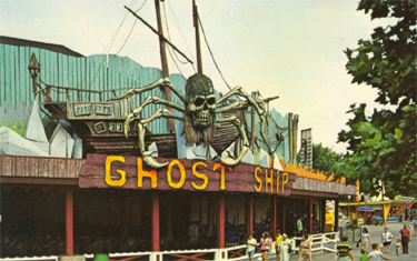 Bill Tracy, while working as Amusement Displays, completed one of his most famous dark rides, Ghost Ship at Kennywood Park in Pittsburgh, Pennsylvania in 1967. Ghost Ship featured a large spider crab with a skull head that rocked back and forth in front of a wrecked pirate ship. The old Traver Engineering Co. ride cars from Kennywood’s defunct Laff in the Dark carried riders through a nautical themed world of skeletons and pirates. The concept for this façade was the same as the one used two years earlier in 1965 on Ghost Ship at Ocean Playland in Ocean City, Maryland. This is an example of how Bill used one of his standard facades and applied his concept to two entirely different scenarios. Ocean Playland’s Ghost Ship was built in a new structure at a new park and was a two-story dark ride, while Kennywood’s Ghost Ship was installed in an existing building at a well established park and was a one-story dark ride. The only thing in common with these two attractions was the name, even the stunts were different. Kennywood’s Ghost Ship was unfortunately lost to fire in 1975. Many of Bill Tracy’s attractions suffered this fate, as many were installed in old wooden buildings without modern day sprinkler systems. The combination of dry wood, grease, electricity and lack of fire suppression was a recipe for disaster.