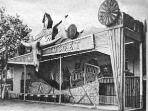 The “Hush-Puppy” car had a fiberglass body, tubular steel chassis, versatile wheel assembly, and operated on a 24V iron track that was transformed within the car to 110V. The “Hush-Puppy” was distributed and installed exclusively through Amusement Displays. However, Amusement Displays did not actually manufacture the “Hush-Puppy.” Amusement Displays sub-contracted this work to KD Enterprises, located in Sunnyvale, California and owned by Kenneth G. Boyle. In the “spiral catalog” Bill actually scratched out the real manufacturer’s name on the “Hush-Puppy” photo. This could have been done for various reasons, which will probably never be known. It is assumed that the term “Hush-Puppy” referred to the quiet operation of this ride system. The “Hush-Puppy” was the most versatile dark ride system to date and was able to negotiate tight turns, rollercoaster-like dips, wave rooms, tilted rooms, and steep grades through one of Bill Tracy’s mine shafts containing a breaking beam stunt.